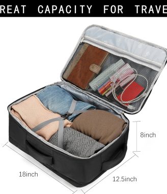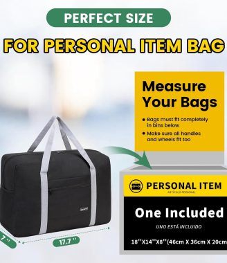 Personal Item Bag for Airlines – Foldable Travel Bag 18x14x8 Small Duffle Bag for Spirit Frontier Weekender Overnight – Black