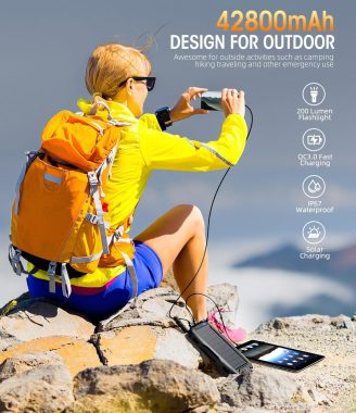 Power-Bank-Solar-Charger – 42800mAh Portable Charger,Solar Power Bank,External Battery Pack 5V3.1A Qc 3.0 Fast Charger Built-in Super Bright Flashlight (Deep Black)